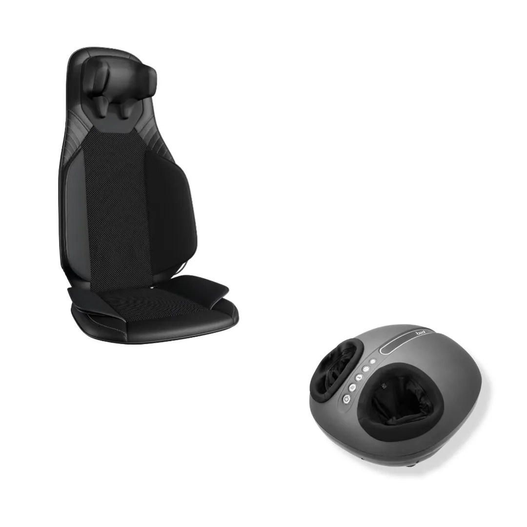 שילוב של מושב עיסוי לגב ולצוואר (דגם MGC-5866H) עם מכשיר שיאצו לרגליים (דגם F15) – לחוויית עיסוי מלאה מהצוואר ועד כפות הרגליים. המושב כולל שליטה חכמה, חימום וכיבוי אוטומטי, והמכשיר לרגליים מצויד ב־3 תוכניות עיסוי, חימום אינפרא אדום ושרוולים נשלפים.